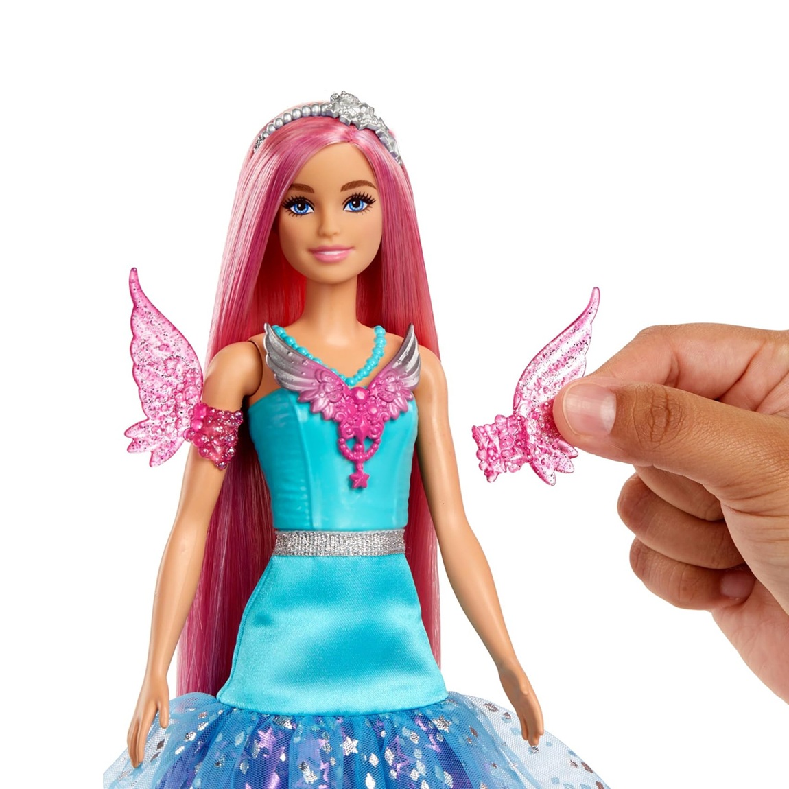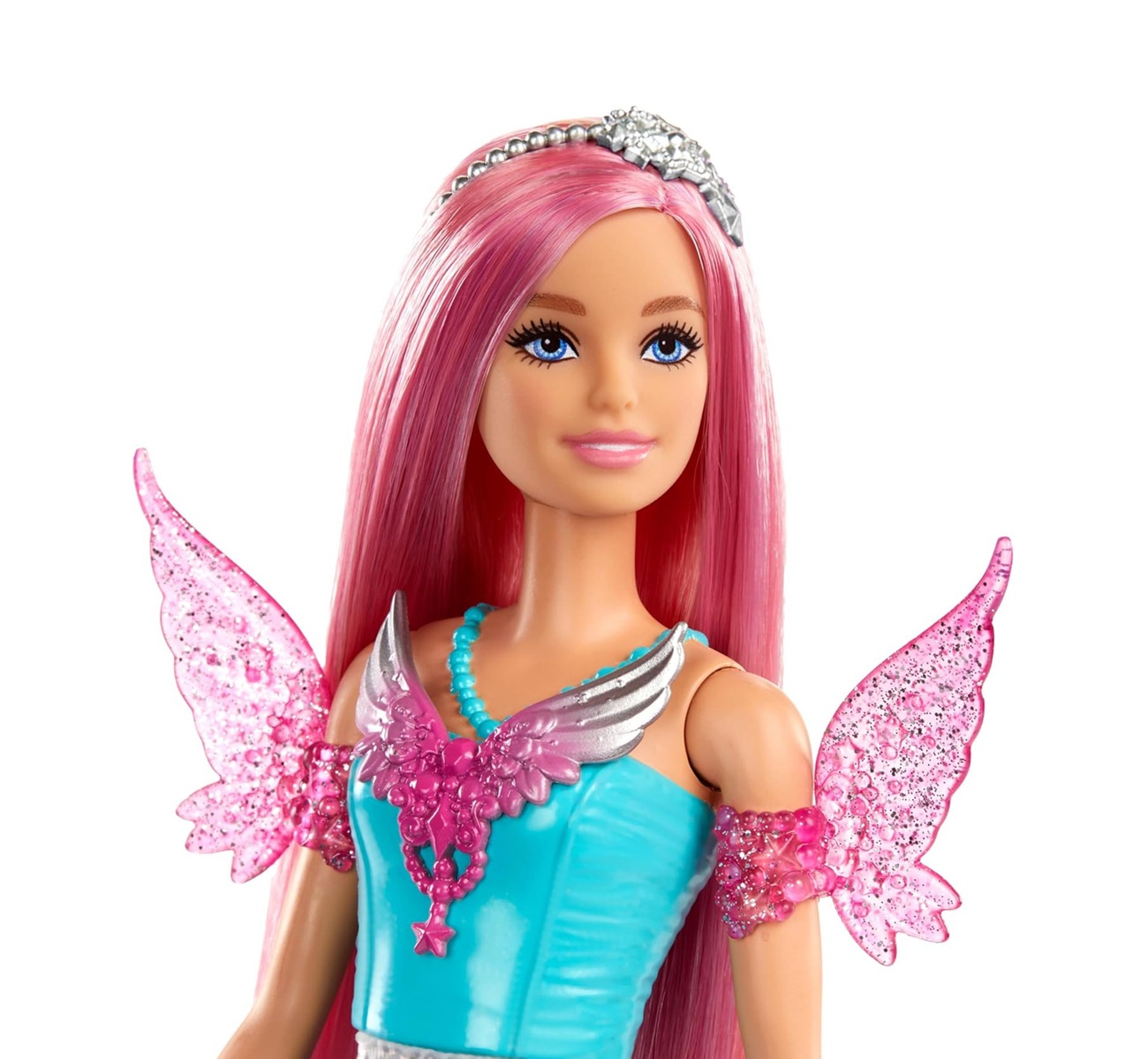 ๐โจ Shimmery dress with wing details makes Barbie feel like a real magical hero.