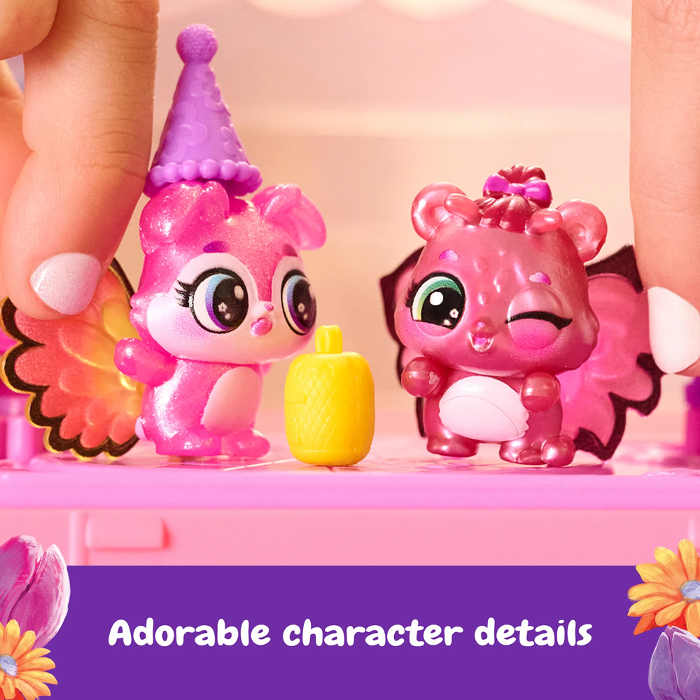 Pluck the smaller flowers to uncover over 15 accessories, including a camera ๐ธ, party hat ๐ฉ, cake ๐, and mini party extras that bring storytelling to life. Once all surprises are revealed, transform the terrarium into a party zone by flipping the dance floor into place, attaching wings, decorating with Hatchi-Pics photos, and celebrating in style ๐ถ๐บ๐