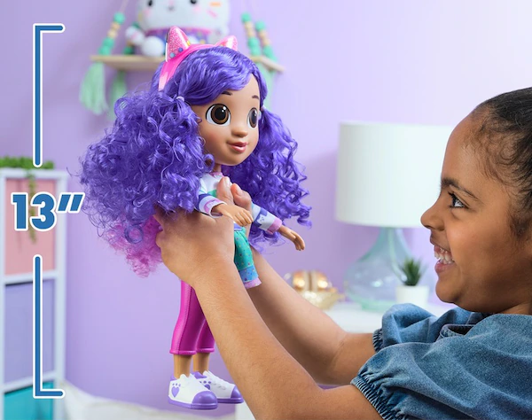 At 13 inches tall (33cm) 📏, Gabby is the perfect size for hugs 🤗, playtime 🎭, and storytelling 📖. Pair her with other Gabby’s Dollhouse toys 🏠, playsets 🎲, and figures 👧 (sold separately) to expand the fun 💕 and build your very own dollhouse world 🏡!