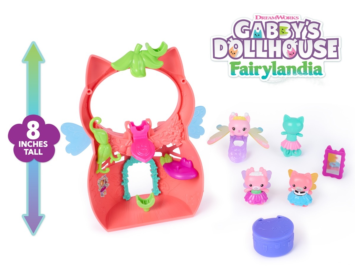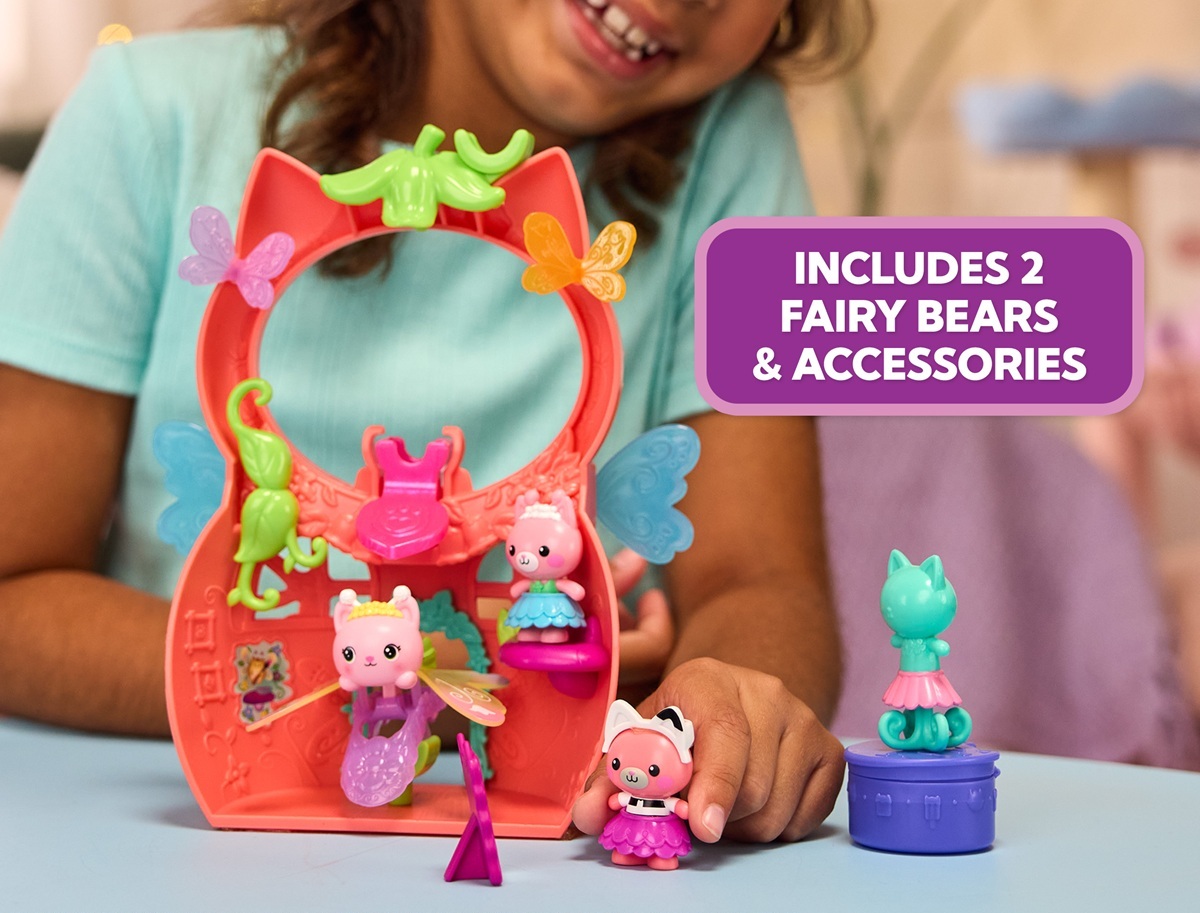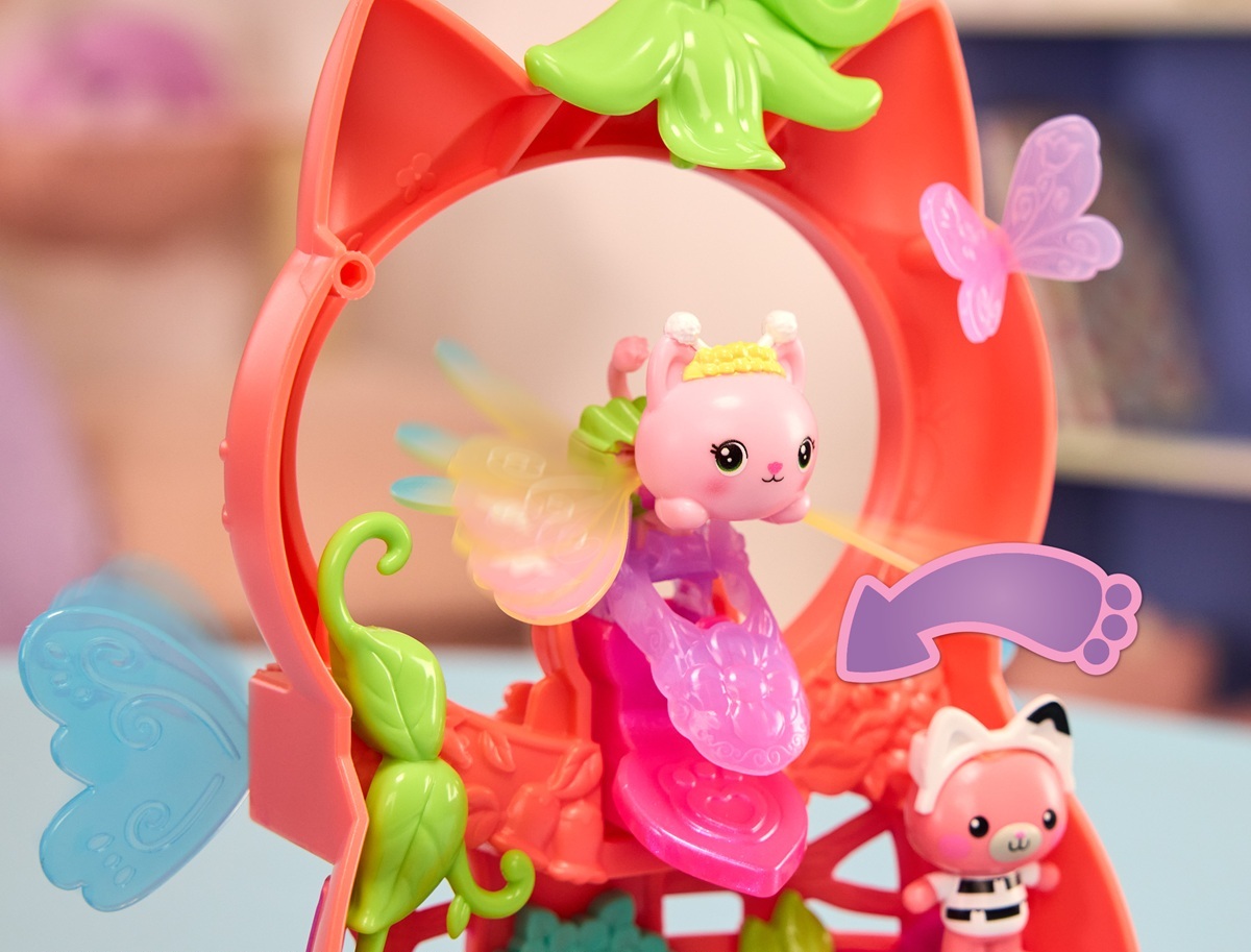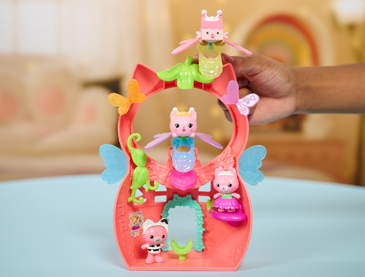 The set features an exclusive rainbow-winged Kitty Fairy ring that kids can wear on their finger and wiggle for flutter-riffic wing action, bringing Fairylandia to life 🪽🌈. Designed to attach to any Gabby’s Dollhouse (sold separately), this playset easily expands storytelling and pretend play fun 🏡🎭