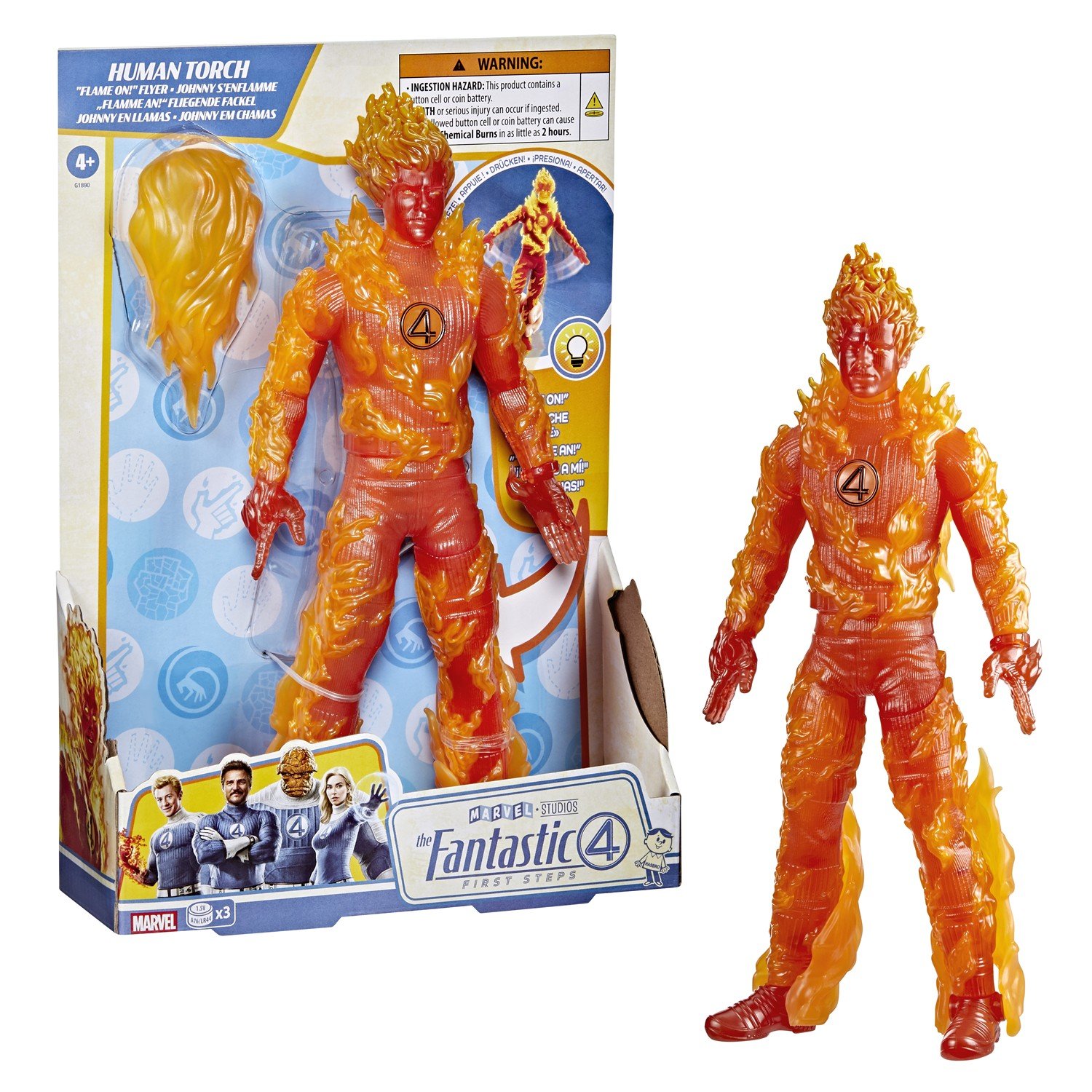 Turn up the heat and take playtime sky-high ๐ with the Marvel Human Torch Flame-On Flyer from Hasbro! Inspired by Marvel Studiosโ The Fantastic Four: First Steps ๐ฌ, this 10.6-inch (26.9 cm) action figure brings Johnny Stormโs blazing powers to life with light-up flame effects ๐ฅ, dynamic motion โก, and epic flight mode ๐.