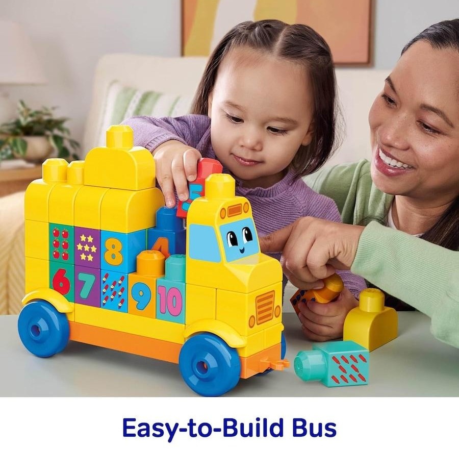 Make learning numbers a rolling adventure with the MEGA BLOKS Build & Count Bus! ๐๐งฑ Designed especially for little hands, this colourful preschool building set includes 45 big blocks to build a bright school bus and introduce toddlers to stacking, counting, and matching fun ๐๐ข