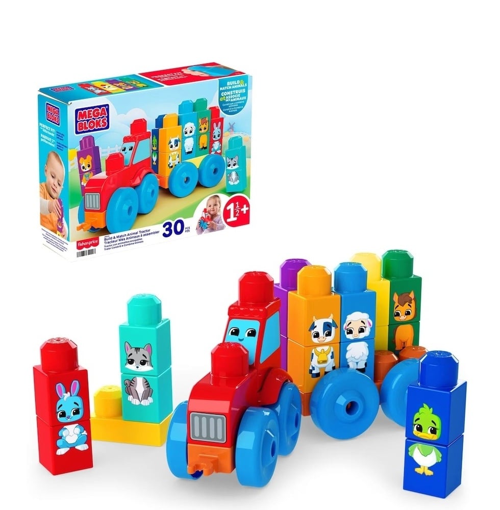 Stack, match, and roll into farmyard fun with the MEGA BLOKS Build & Match Animal Tractor! ๐๐งฑ Designed especially for little hands, this colourful preschool building set includes 30 big blocks and 2 rolling wheelbases, letting toddlers build a tractor and stack adorable farm animals while learning colours and matching skills ๐จ๐