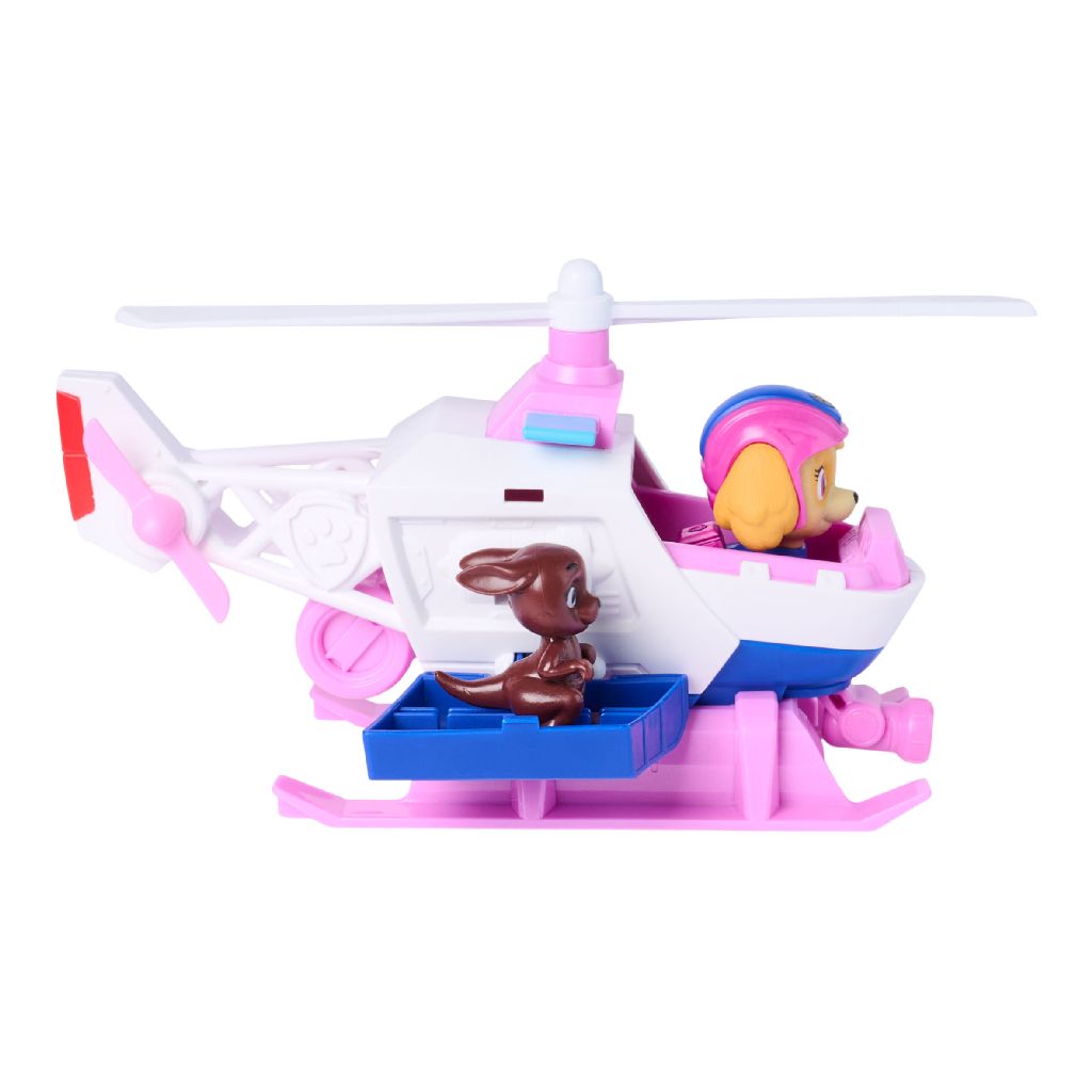 This set includes a 6-inch helicopter vehicle with a real working propeller, plus two figures, including Skye (over 2 inches tall) in her Search & Rescue uniform and a kangaroo friend ready for saving 🦘✨. Kids can place both figures into the helicopter, pull back, and launch forward for thrilling rescue action that adds excitement to every mission 🚀💨