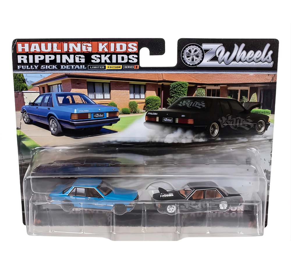 Street cruiser meets burnout chaos in this ultimate Aussie Ford release ๐๐จ The OZWheels Fully Sick Detail (FSD) Hauling Kids Ripping Skids Series 1 Ford XD Falcon Twin Pack celebrates true Australian car culture with two iconic XD Falcons โ one built for cruising, the other born to shred tyres ๐ฅ๐